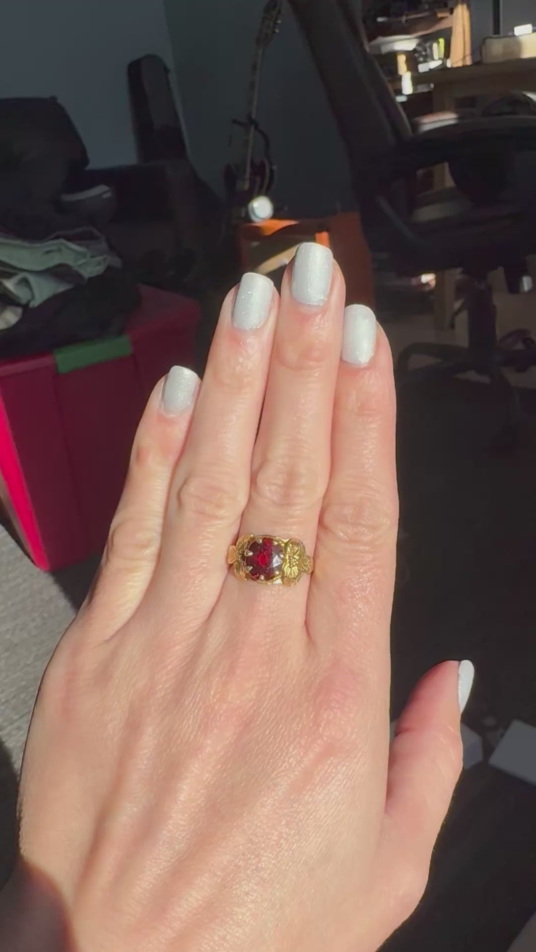 Antique 18K Yellow Gold Garnet Ring – Size 6.25