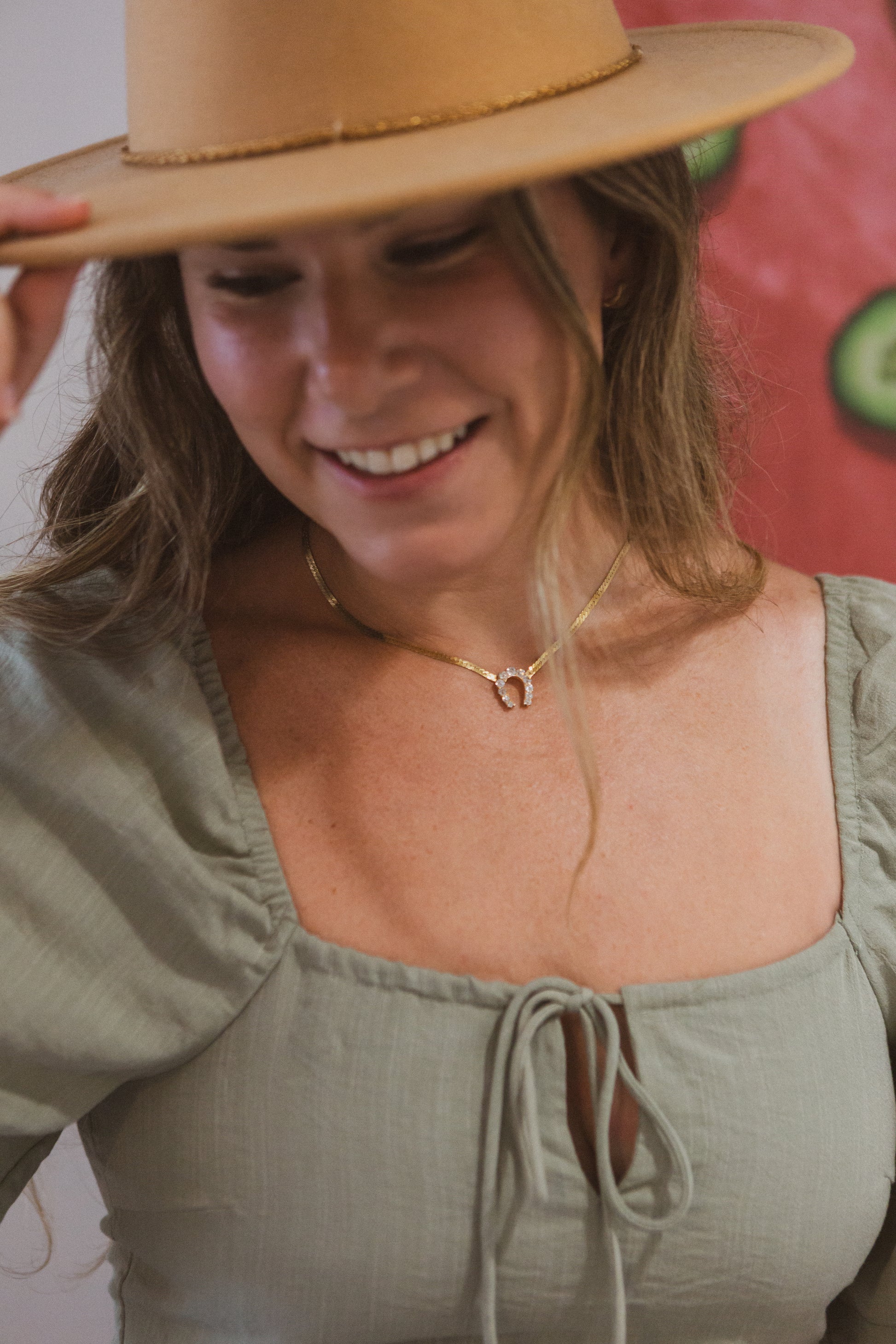 This exquisite necklace is a timeless blend of elegance and heritage. Featuring a 16" vintage 14K gold herringbone chain, it showcases a stunning antique horseshoe pendant adorned with 11 sparkling old mine cut diamonds. The pendant was originally an antique stick pin, thoughtfully transformed into a one-of-a-kind pendant to create this unique piece.