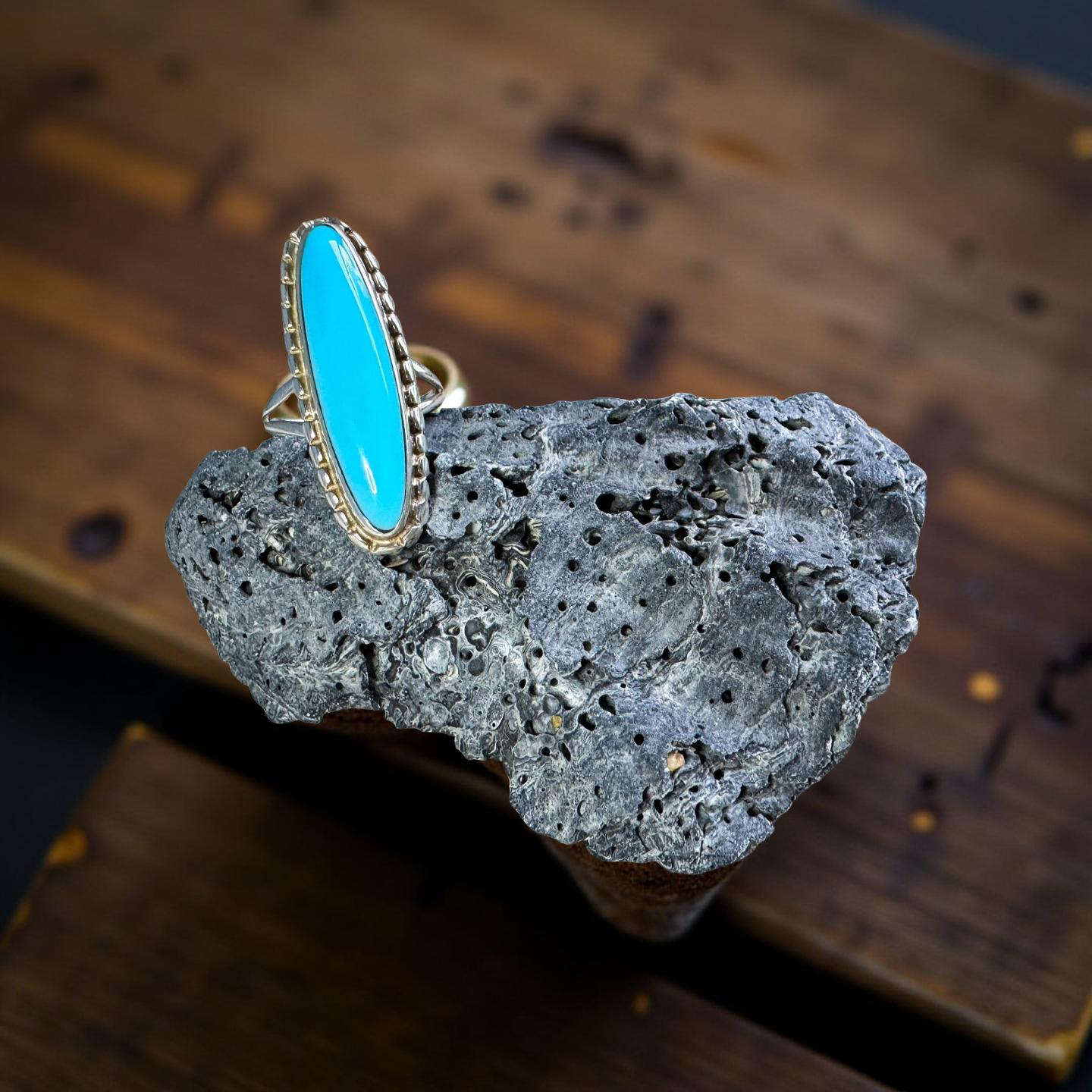 Whether worn alone or paired with other vintage treasures, this classic sterling silver and large turquoise ring is ideal for lovers of boho, Western, or artisan jewelry.